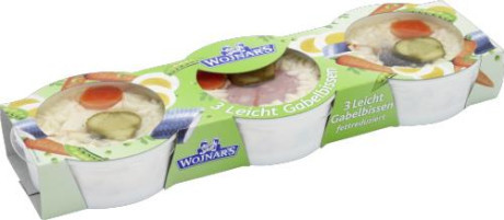 5% főtt halfilé, 5% hering, felvágott kolbász (sertéshús, víz, marhahús, étkezési só, dextróz, fűszerkivonatok, maltodextrin, stabilizátor: polifoszfátok; szárított keményítőszirup, antioxidáns: nátrium-aszkorbát; cukor, fűszerek, színezék: valódi kármin; tartósítószer: nátrium-nitrit),